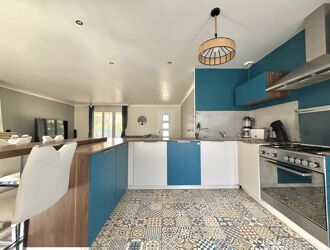 Rare et recherchée. agréable villa de plain pied de 122 m² érigée sur un terrain plat et arboré de 610 m². Idéalement située dans le village de Saint André. cette maison présente une belle pièce de vie lumineuse et traversante. trois chambres et un espace pouvant faire office de logement saisonnier. profession libérale ou tout simplement un bel espace parental (chambre + dressing et salle d'eau)